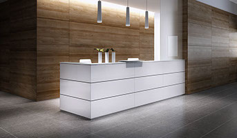 Das Thekenprogramm in repräsentativem Design: klar und hochwertig, zurückhaltende, feine Linienführung, anspruchsvolle Ästhetik - zeitgemäße funktionale Lösungen für Ihre hohen Ansprüche.